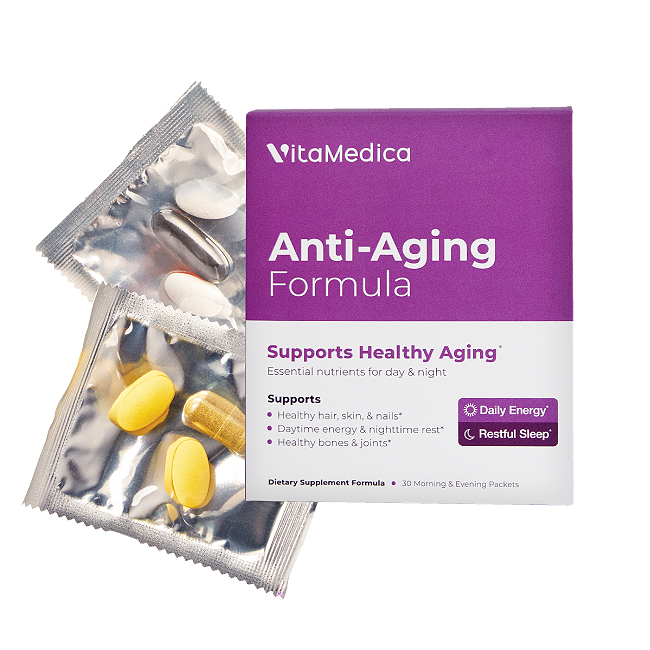 Age radiantly with VitaMedica’s Anti-Aging Formula, clinically-formulated to restore skin’s elasticity and youthful glow, diminish fine lines, and support hair, nails, energy and restful sleep.
