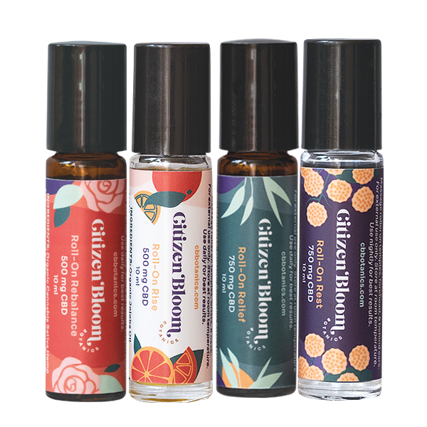 The Baller Bundle includes Citizen Bloom’s 4 aromatherapeutic and functional Roll-ons of Relief, Rest, Rise, and Rebalance.