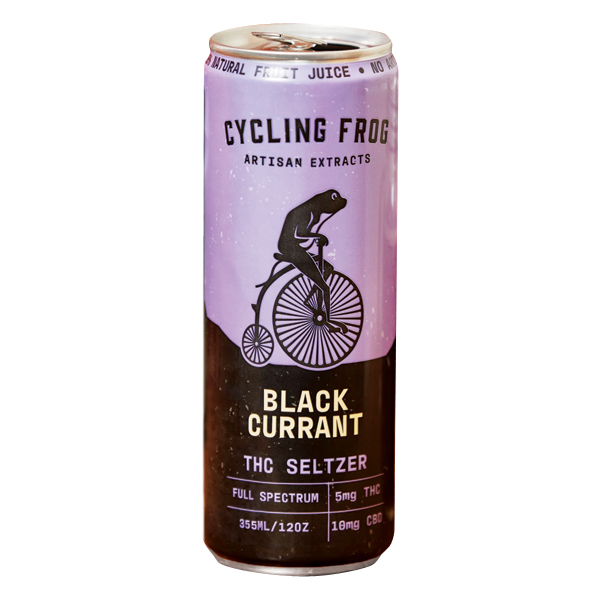 Say goodbye to hangovers, bloat, and unwanted calories and say hello to Cycling Frog’s Black Currant THC seltzer.