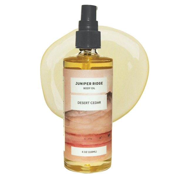 Desert Cedar Body Oil works as both a moisturizer and massage oil with an antioxidant-rich base blend of organic jojoba, sweet almond and coconut oils.