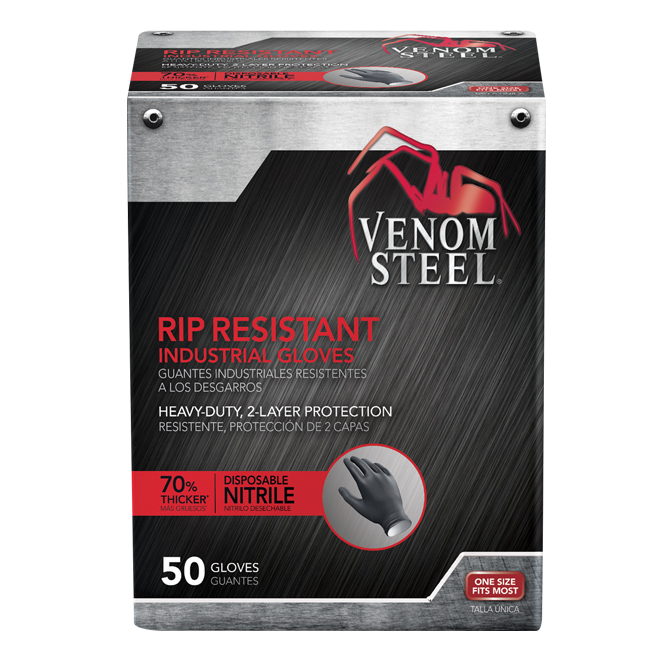 Venom Steel 2-Layer, Rip Resistant, Disposable Nitrile Gloves are ideal for taking on automotive, construction, painting & around-the-home DIYs.