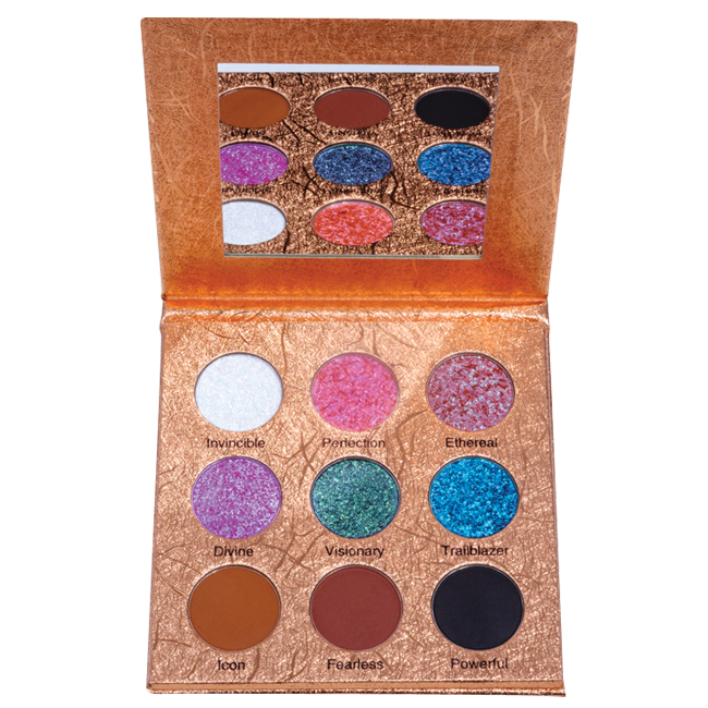 Introducing this stunning 9-pan eyeshadow palette that effortlessly brings versatility and vibrancy to your makeup collection.