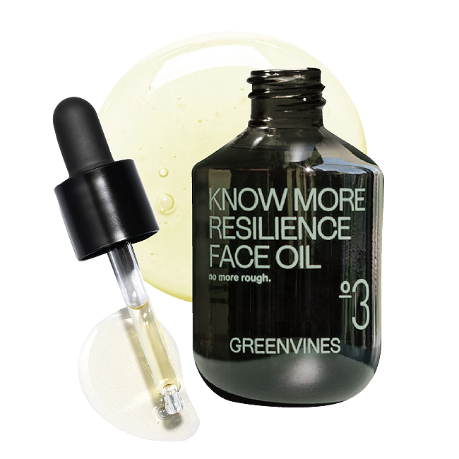 GREENVINES Know More Resilience Face Oil delivers award-winning green ingredients & rare oil-soluble actives for a long-lasting, supple, and naturally glowing complexion in just 4 weeks.