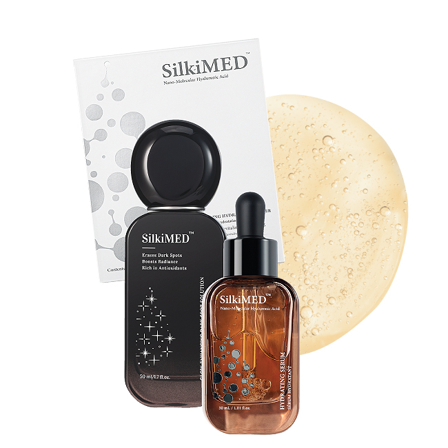 Proven to deliver intense hydration, brightness & reduce dark spots and wrinkles, SilkiMED’s Comprehensive Set with innovative small-molecule technology penetrates deep to support collagen & elastin.