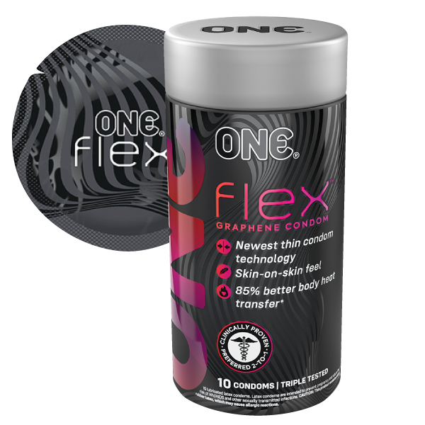 ONE Flex is one of the world’s thinnest condoms and provides 85% more body heat transfer than standard latex condoms.