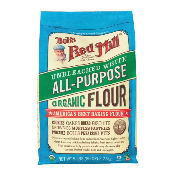 Bob’s Red Mill Organic All-Purpose Flour is a premium baking flour freshly milled from certified organic, hard red wheat. You can use this high quality wheat flour product for all your favorite baked goods, including food like yeast breads, quick breads, biscuits, muffins, cookies and cakes.
