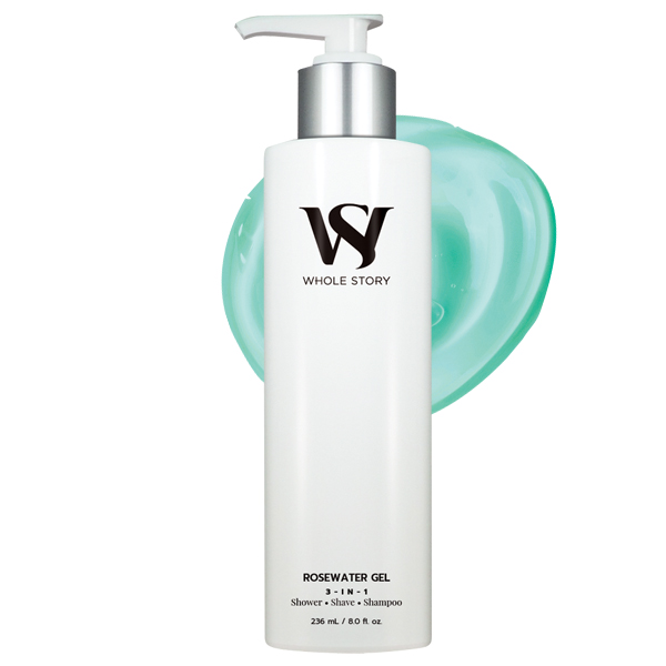 Rosewater Gel works wonders as a body wash, shave gel and shampoo.