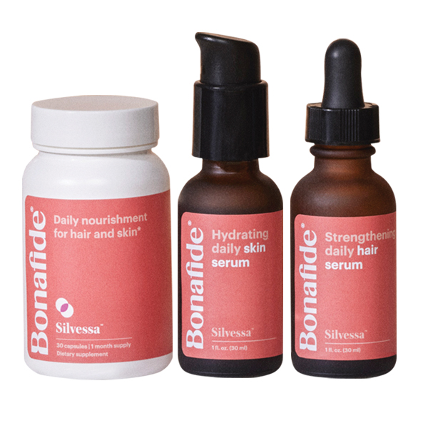 Silvessa is the first comprehensive system designed to restore and protect hair and skin affected by estrogen decline, from the inside and out.