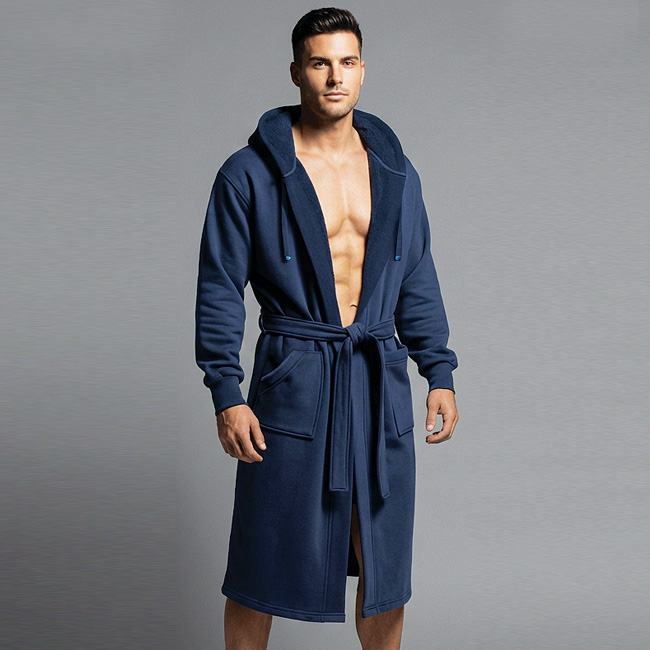 The robe for non-robe guys. Hoodie outside. Towel inside. Permanently attached belt & non-floppy sleeves.